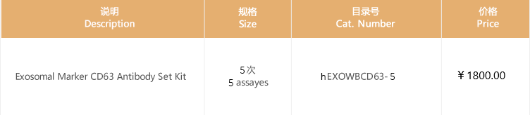 The Exosomal Marker (CD63) Antibody Set Kit provides an economical means to evaluate the presence of exosomal markers. The kit includes enough primary antibody to perform at least 10 western blot experiments for each target. The secondary antibody that is included in this kit has been optimized to enhance the signal-to-noise ratio. We do not recommend using other secondary antibodies with the primary antibodies at this time.