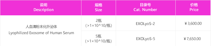 潤(rùn)基生物提供的超純外泌體粉末是通過(guò)濃縮柱和 SEC 柱(Size Exclusion Chromatography)連續(xù)濃縮和純化,然后經(jīng)過(guò)真空冷凍干燥獲得的。外泌體粉末可來(lái)自各種體液(血清、血漿、尿液、唾液、乳汁等)和細(xì)胞培養(yǎng)上清液。粉末化的外泌體需經(jīng)過(guò)總蛋白含量(BCA 法)和納米粒子跟蹤分析顆粒數(shù)的測(cè)定等驗(yàn)證,與新鮮的外泌體相比,冷凍干燥不會(huì)改變外泌體蛋白質(zhì)和核酸的穩(wěn)定性,反而易于運(yùn)輸且長(zhǎng)期儲(chǔ)存(+4℃),復(fù)溶后仍然保持外泌體的完整形態(tài)和生物學(xué)功能。