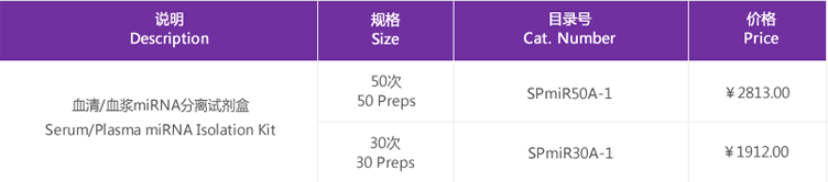 血清/血漿RNA分離試劑盒采用酚/胍鹽裂解液提取血清/血漿中總RNA(含有mRNAs和miRNAs,通過特異性結(jié)合核酸的離心吸附柱和獨特的緩沖液系統(tǒng)方便、快捷地純化、洗脫RNA,可直接用于下游應(yīng)用,如realtime RT-PCR,Microarray 基因表達(dá)譜,NGS 測序等。